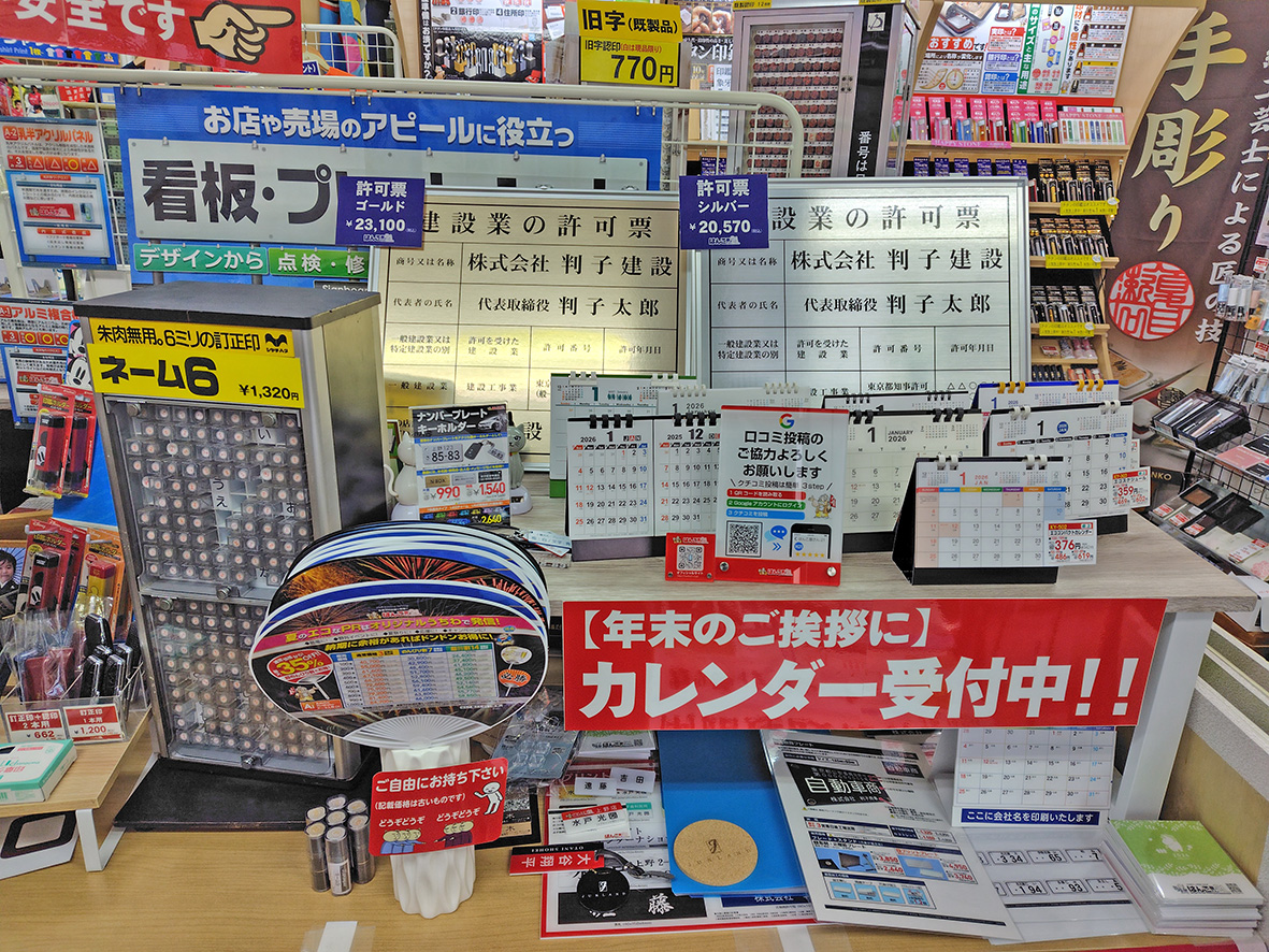 一般的なお苗字でしたら店頭に既製品(150円)の三文判タイプがございます。