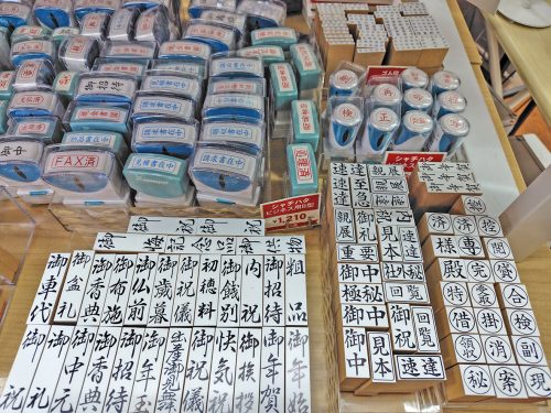 直ぐにお渡しできる既製品もございます。山形で比較的お問い合わせが多い「御法礼」のゴム印もご用意しております。